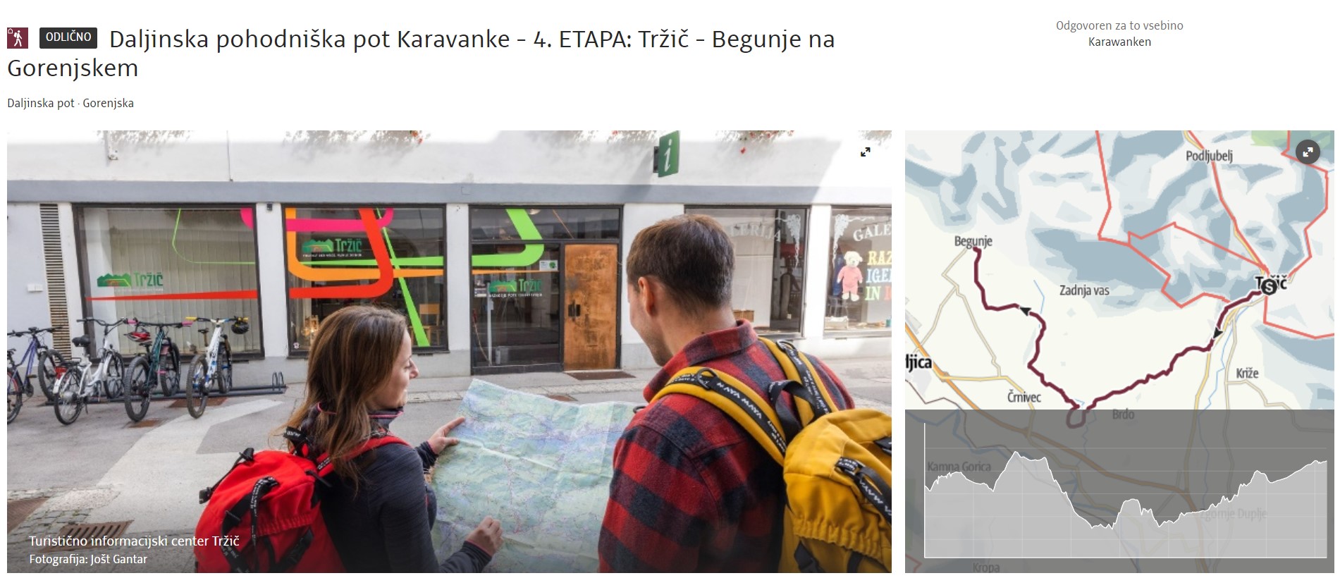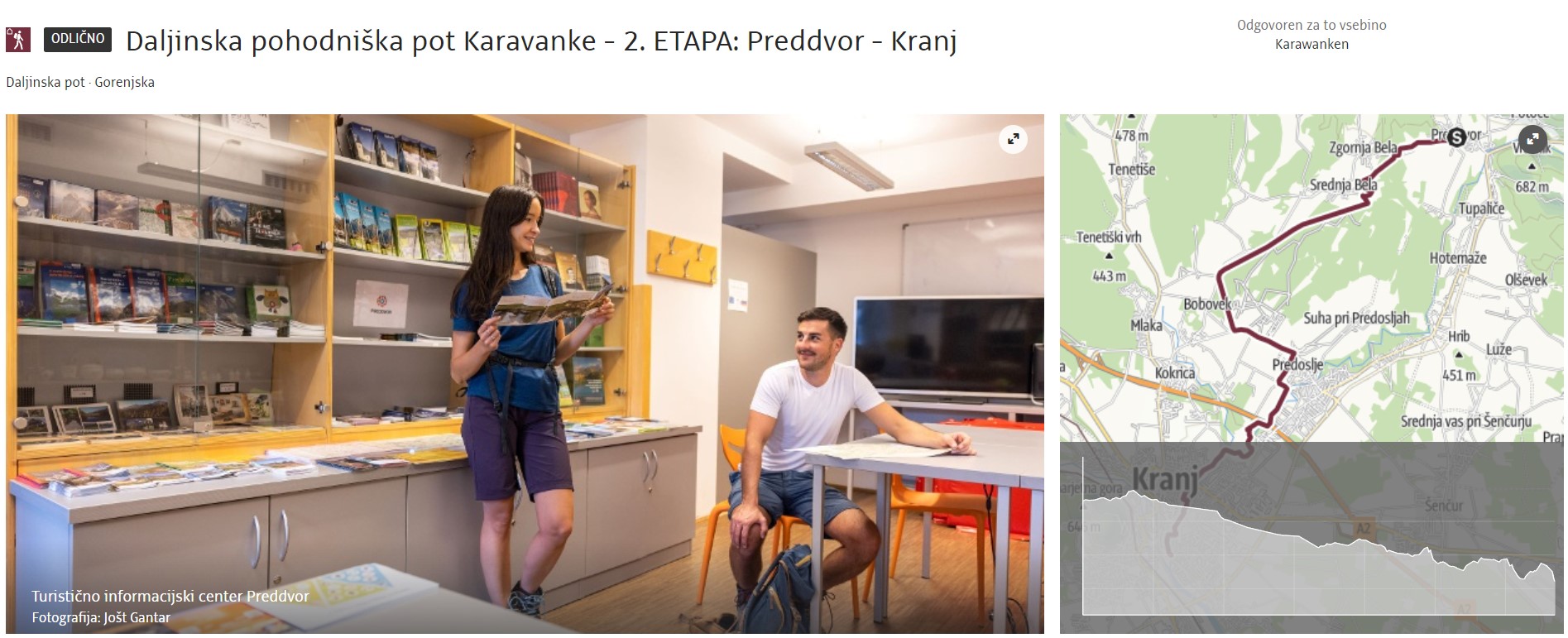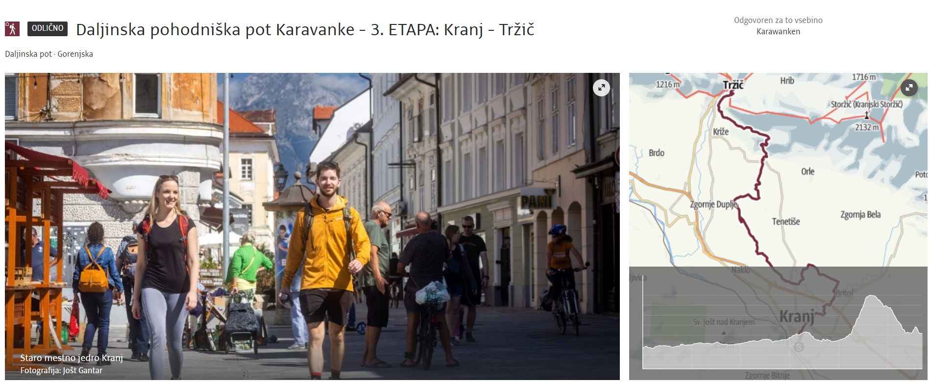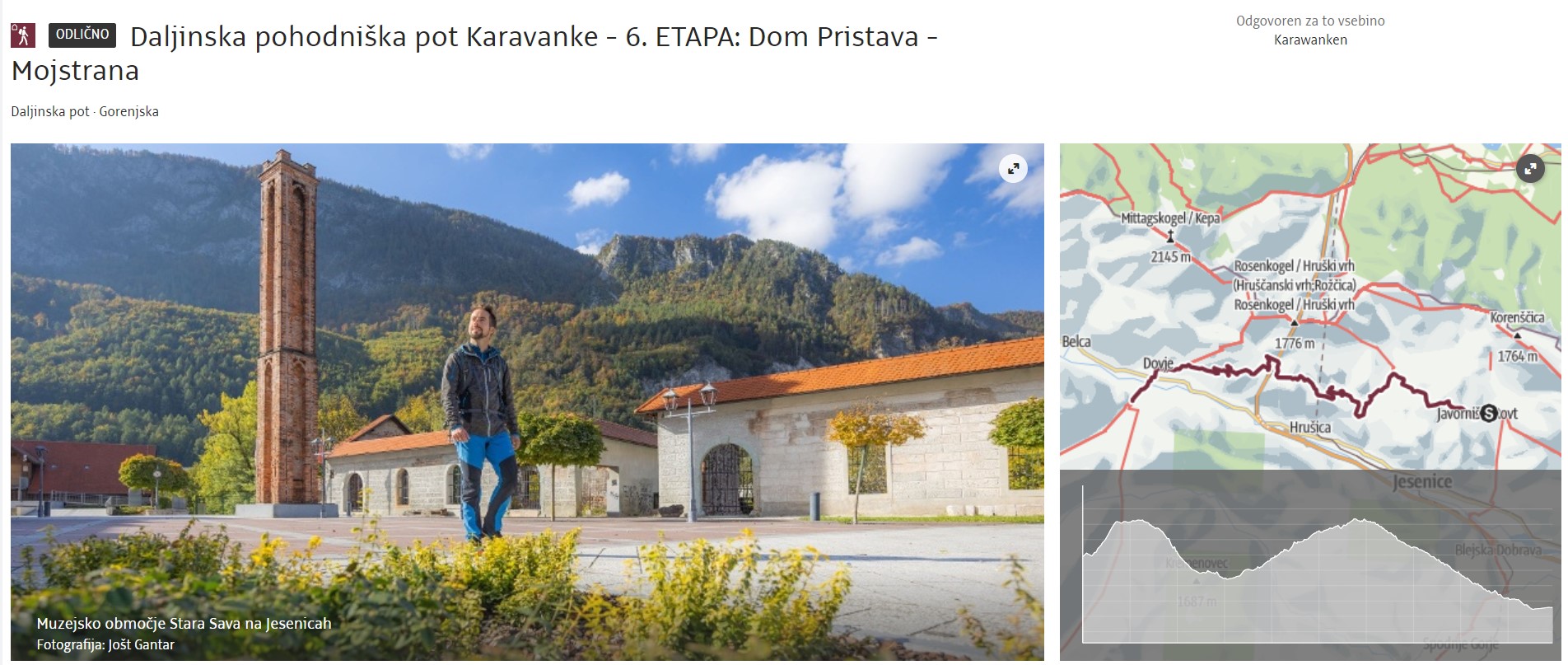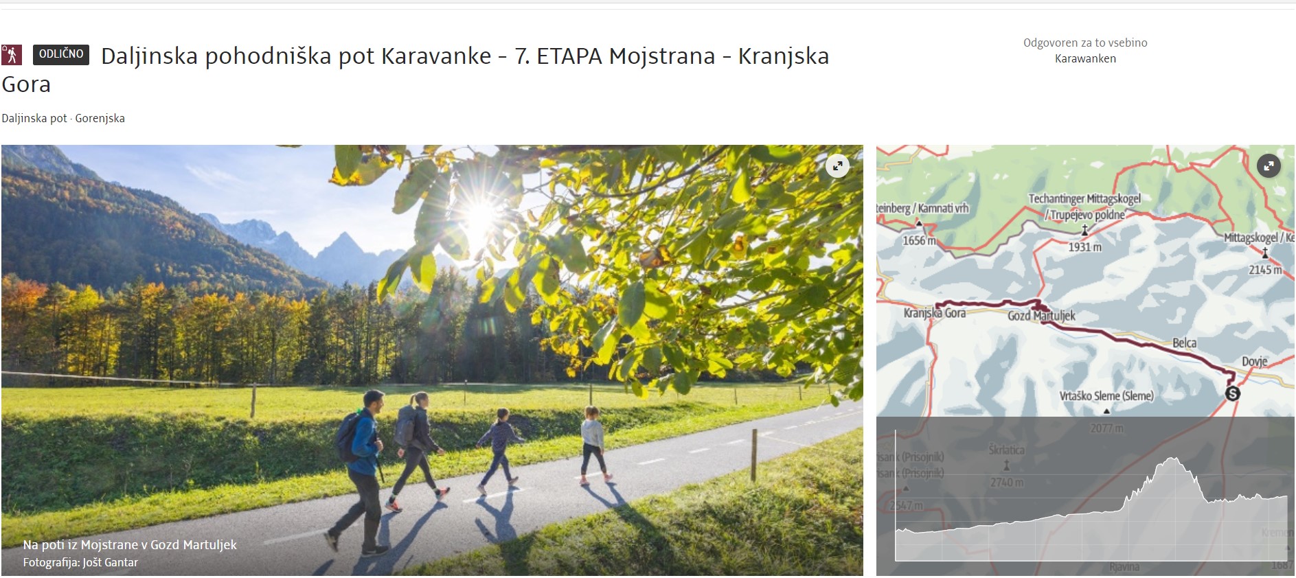 Via Španov vrh and Planina pod Golico, known for meadows full of blooming daffodils (in spring), the route reaches Mojstrana with magnificent views of the Julian Alps, where it joins the Julijana hiking trail till the end in Kranjska Gora.